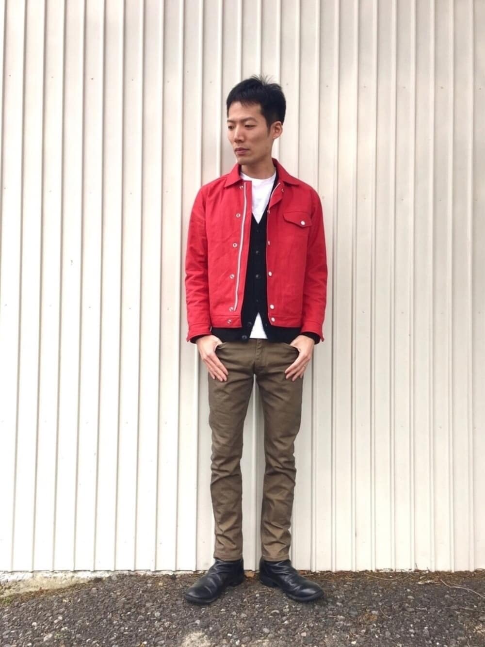 赤色の使い方 個人的には中二的に赤×黒合わせがセオリーですが、トリコロールも捨てがたいところ。 しかし、この赤ジャケではジェームズ・ディーンよろしくスタイルになってしまう。 クリスマスカラーもいいけど、『なんか...なんかなあ...』(朝ドラ観てる人はわかる)と思いついたのが赤×茶! ...だったのですが、いい感じに合うブラウンアイテムがなかったので結局安易に黒に逃げ、パンツでお情け程度にブラウン系を持ってきました。 秋頃にブラウンアイテムが増えていたら紅葉カラーとしてまた挑戦したいところ。 最近家にいる時はこの赤ジャケをずっと着ています。ビンテージのテント生地なので経年変化が楽しみなんですが、中々育てる機会がないので部屋着にしてます。 同じく501もほぼ育成のため毎日履いていて、そんなわけで家ではパッと見ジェームズ・ディーンスタイルです。 いや、leeでもマクレガーでもないんですけどね。