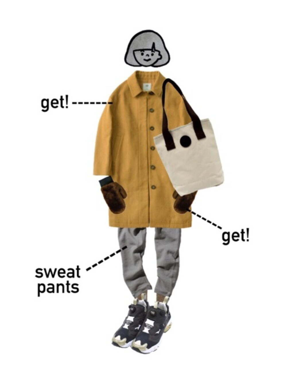 haco.のステンカラーコートとファーミトンが ついに届きました! とても可愛くてお気に入りです(^ν^) スウェットパンツを合わせるのも かわいいなーと思いました。 リブ付きのパンツだと尚良し。