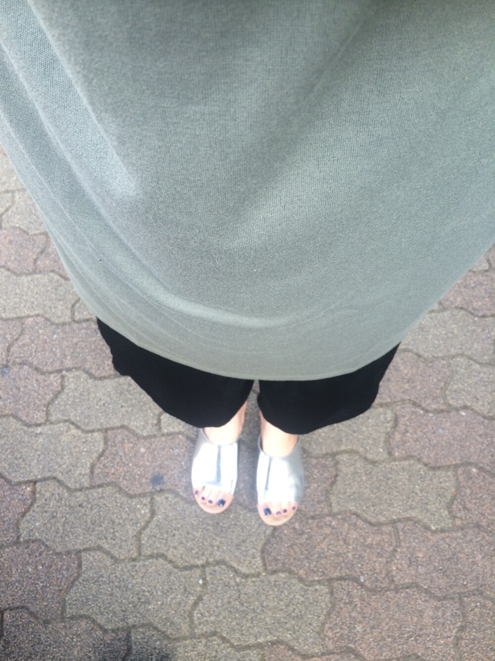 ノースリーブのTワンピに黒のテロテロガウチョパンツのシンプル楽チンコーデ お気に入りのシルバーのプラットフォームサンダルを履いて。 スカイツリーに家族と行ってきました。ちょうど最後の東京湾花火大会が展望台から観えてご機嫌でした。