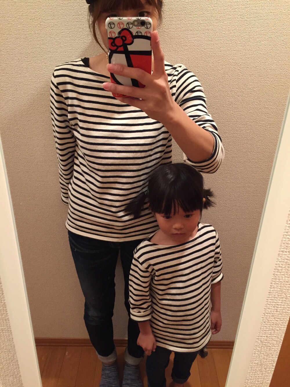 就学前検診のため、親子で小学校へ!! 何を思ったか、お揃いコーデにていざっ!!笑 迷子になってもすぐわかるっ(笑)