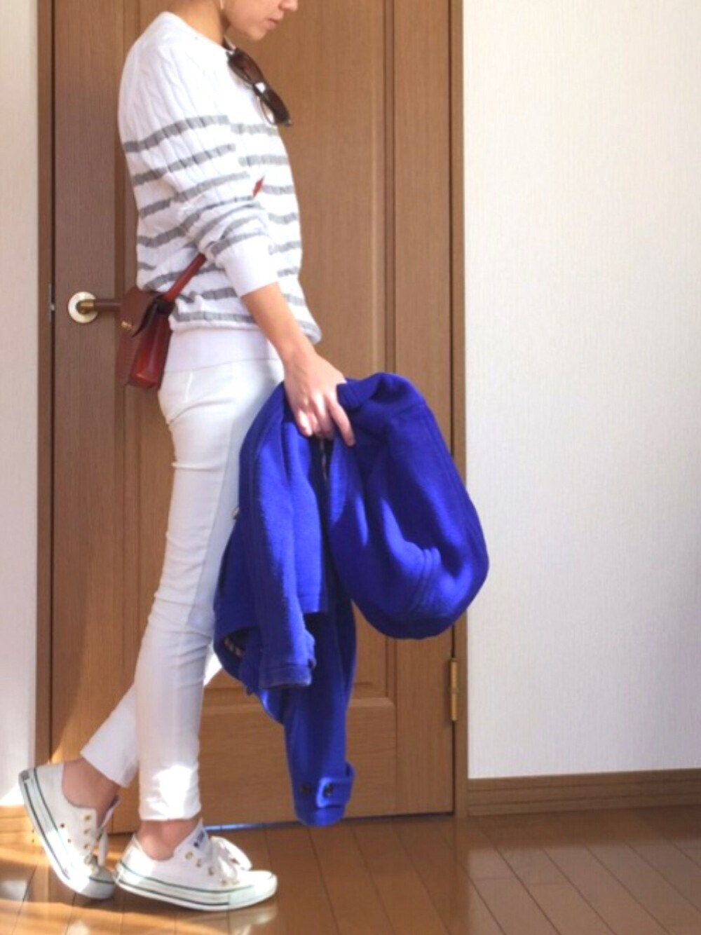 ホワイトコーデ♡ UNIQLOニットはメンズMサイズ。 着心地good👍👍👍 レイバンサングラスは旦那さんの拝借しました。 私も欲しいなぁー🕶✨ 見てくださりありがとうございます◡̈⃝