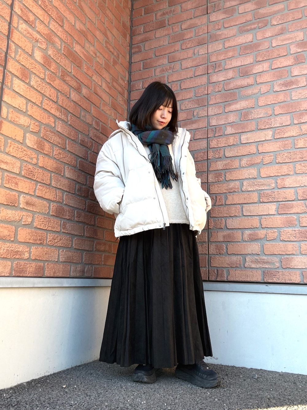 リアルバイ一押しのお気に入りコーデです☺︎ フェイクスエードプリーツスカートはしっかり地厚で暖かく着回しにも◎