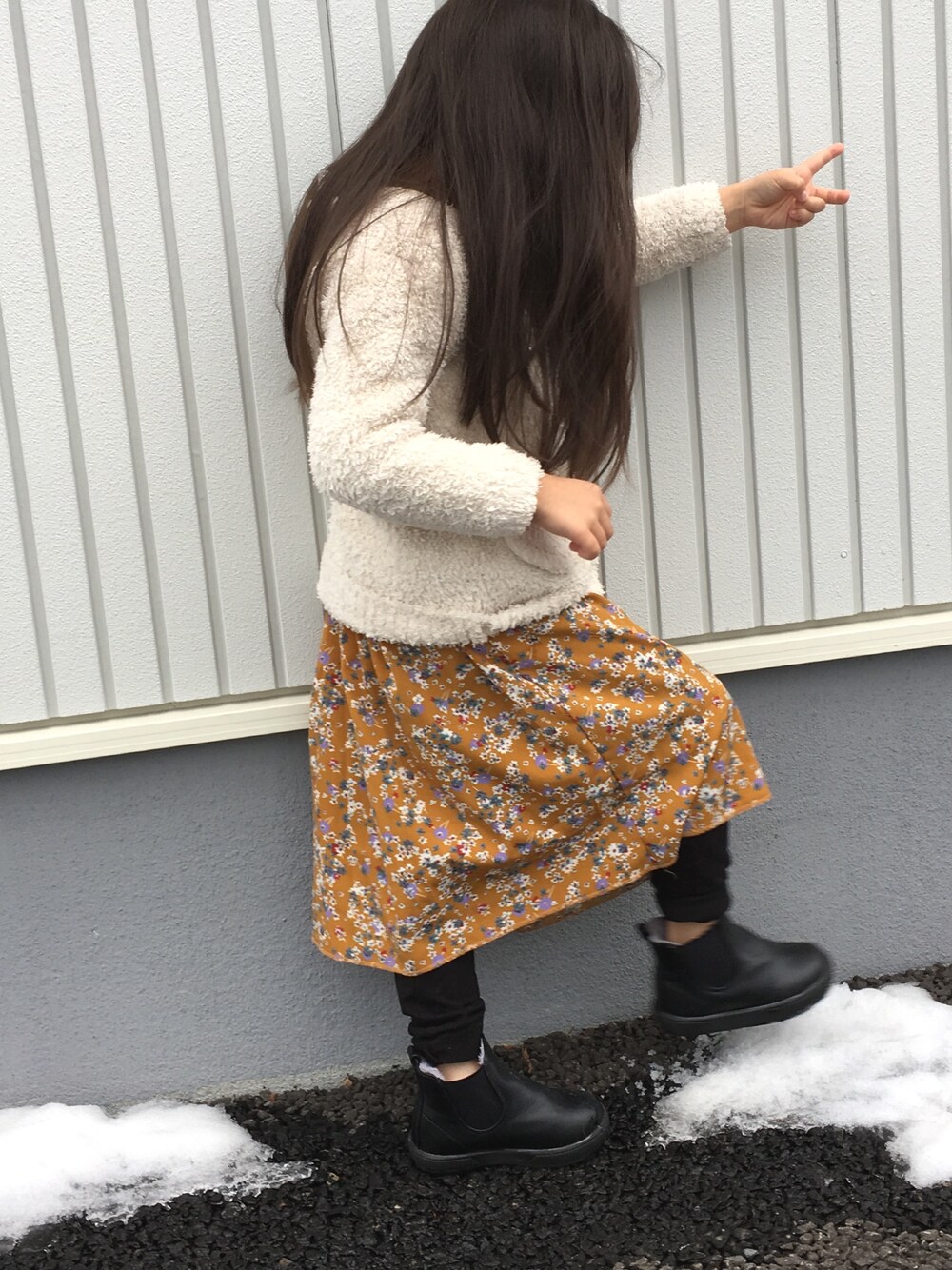 カーディガンの裾後ろめくれてるけど笑 またお気に入りのスカート💕 ブーツも新調して喜んでた😊
