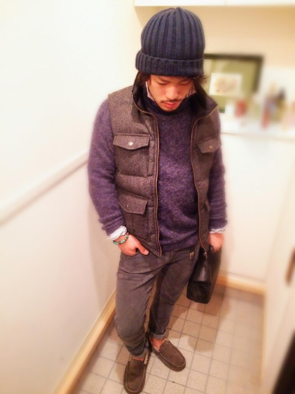KAME-GUYのダウンベストを使ったコーディネート
