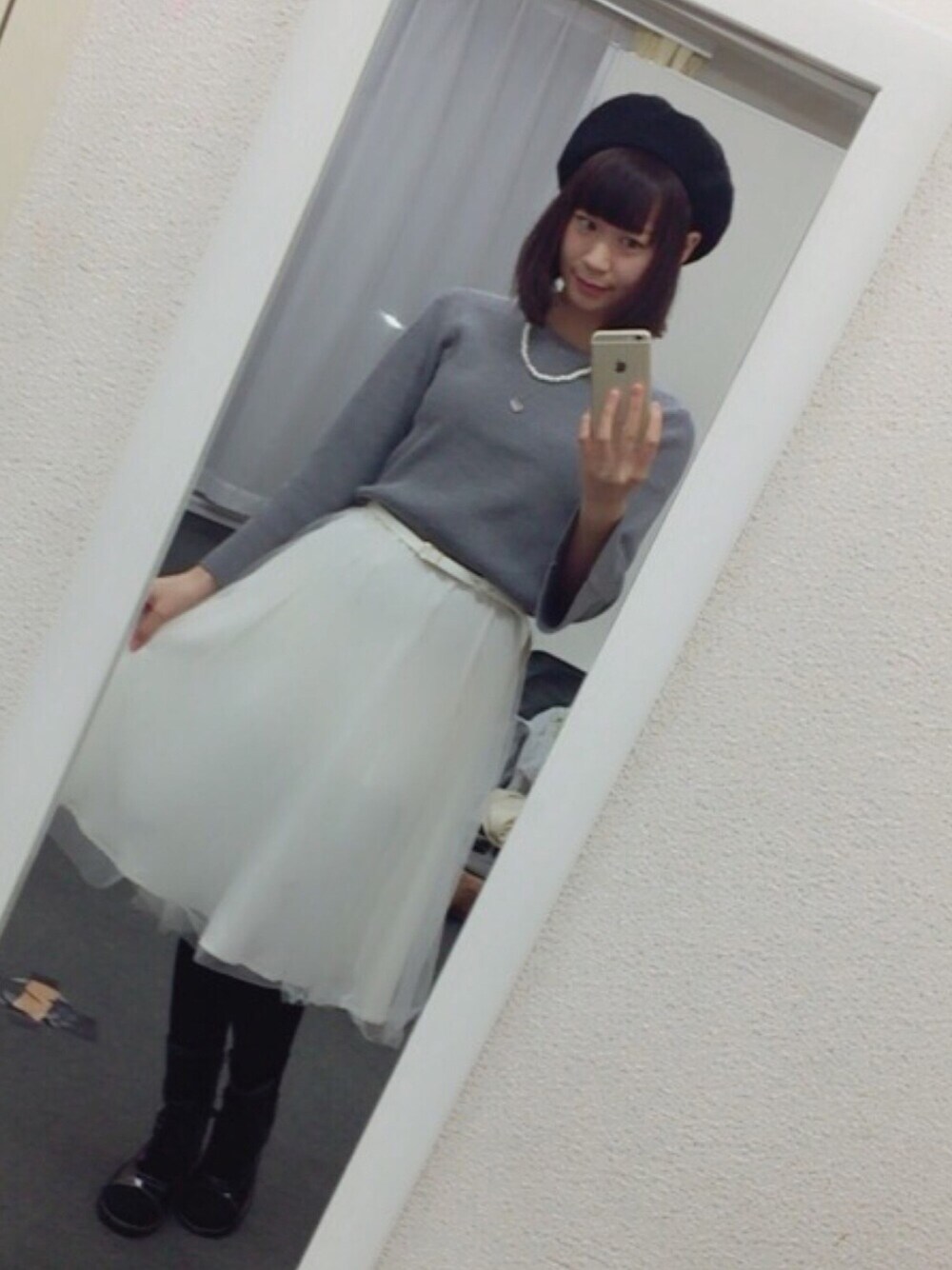 シンプルコーデ(^^)b 最近グレーが好き。 MOMINOのエナメルブーツは思い出の靴♪ 仮面女子*小島夕佳 Twitter@kojima__yuuka