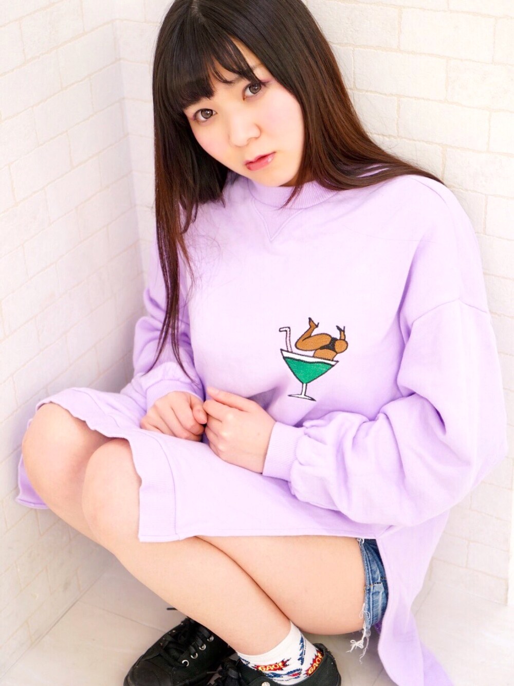 トレーナーのワンポイントにひとめぼれ。 あと横のスリットがかわいくてせくしー。 靴下のサメはユニバのジョーズの アトラクションが好きで買ったよ。 仮面女子研究生♡鳥越ゆいな Twitter @yuina_torigoe