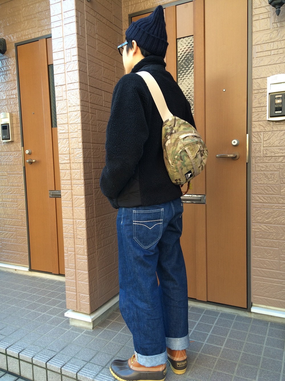 アウトドアスタイル。グレゴリーバックにビーンブーツ。