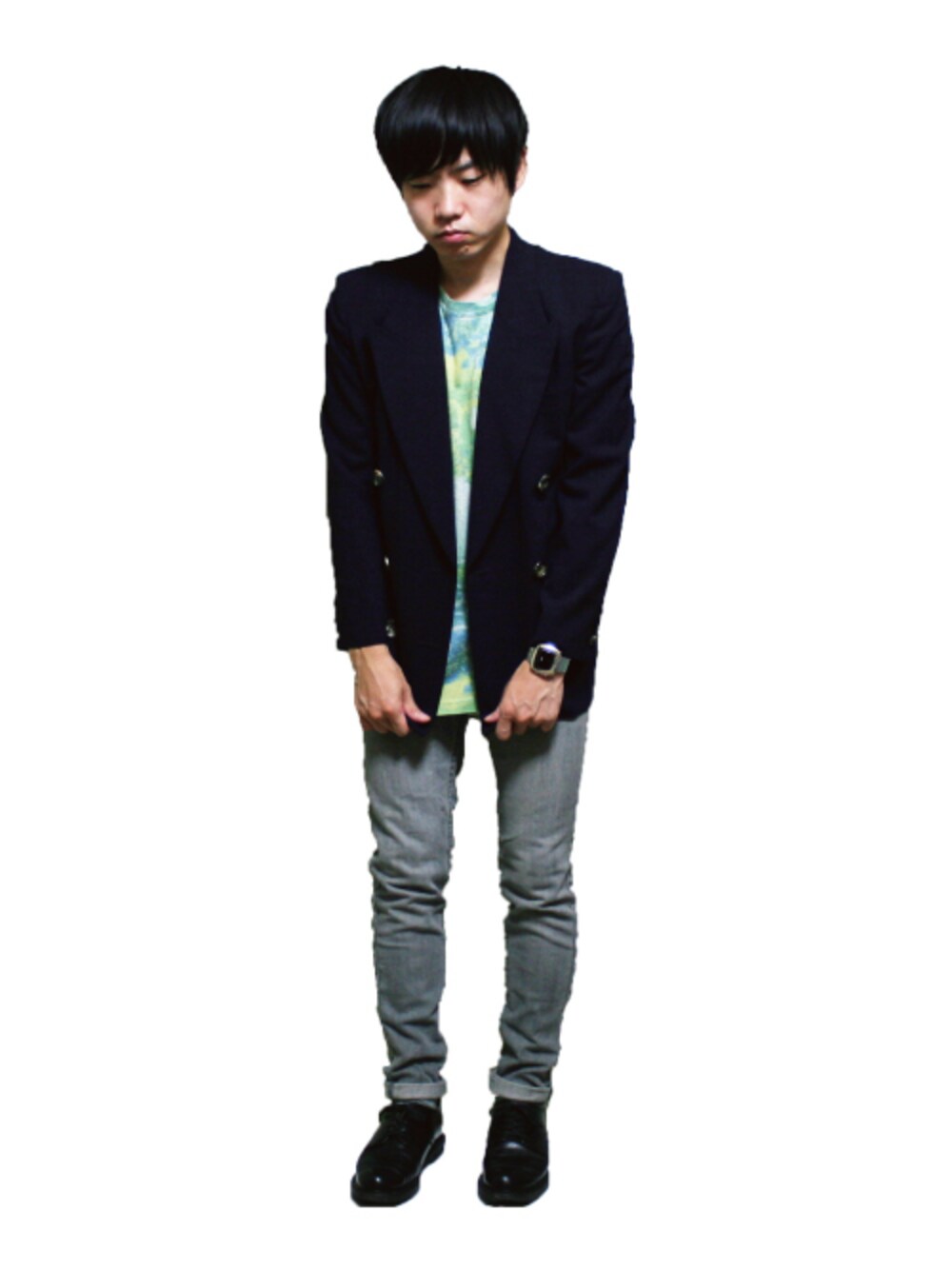 朝晩と肌寒い雨の日はジャケットを羽織ってレッツゴー。 緑と紺って相性いいですね。
