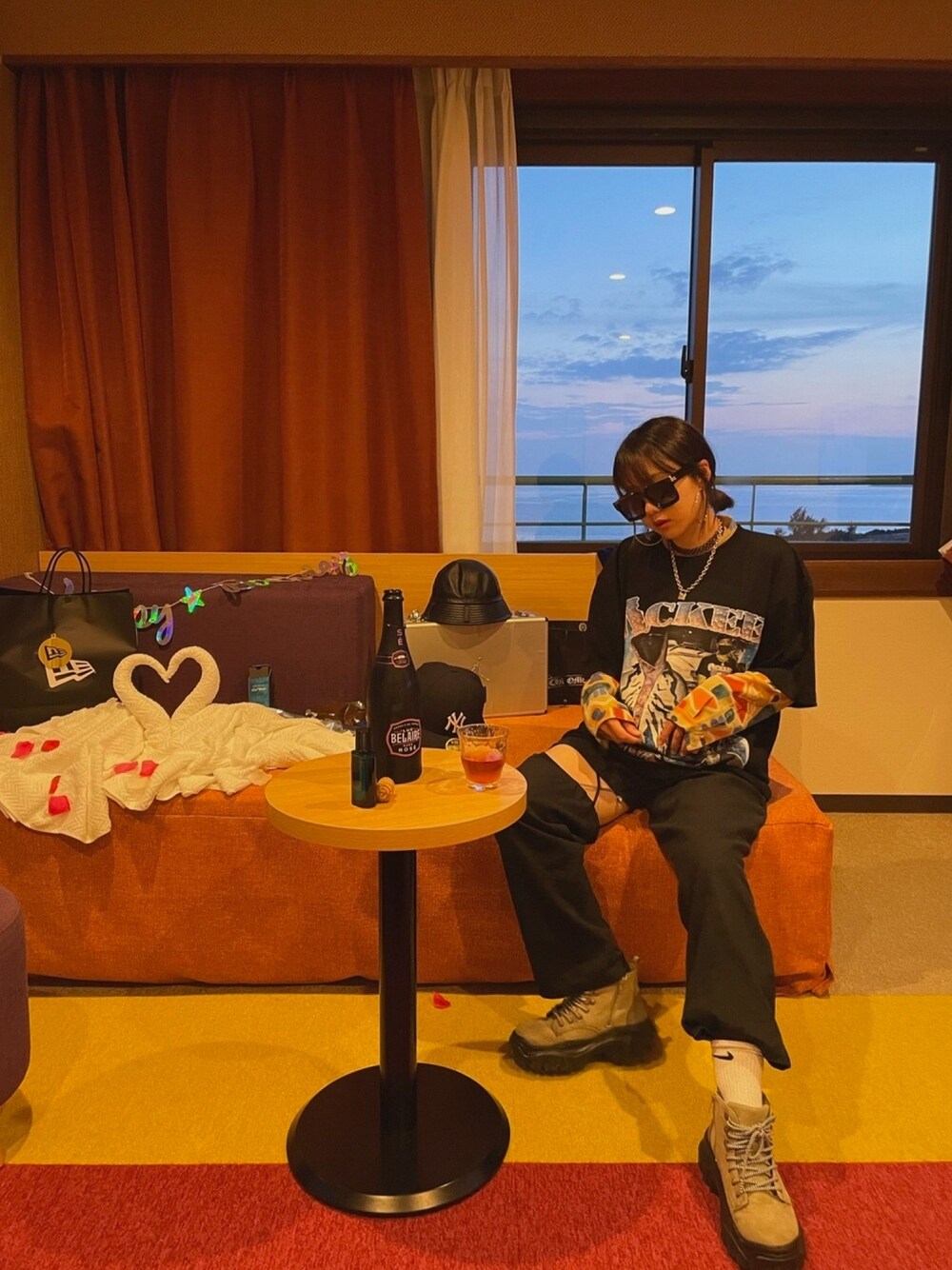 トップス頼み込んで作ってもらった。darlingとお揃い世界で2枚だけ👕👕[O.Z.Y.K.I.X] パンツは、自分で切ってリメイクしたよ。ミシン持ってないから全て手縫いで頑張った🪡 instagram @kami__non Twitter @kami__non