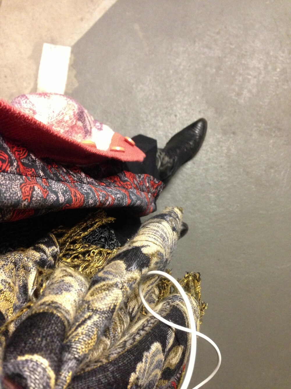 上半身は古着屋qosmos 下半身は古着屋raglamagla ストールは民族系のお店で購入。