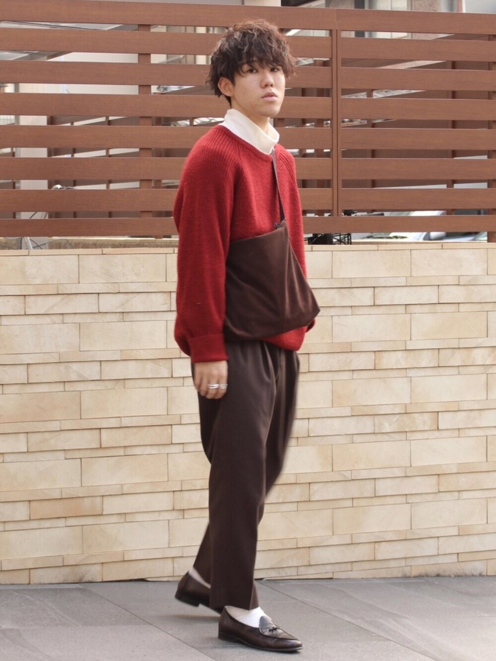 暖色コーディネート。 トップスのローゲージのニットが凄くオーバーサイズなので少しルーズ感が出ます。 ブラウジングが凄くしやすいので使いやすいです。 ポイント💮 ルーズ感ならではの袖の折り込みと ニットのブラウジング インナーはフリース素材 トップスはローゲージ バッグはベロア素材 と上半身に起毛感を持たせて 足元はスラッと見えるようにしております!