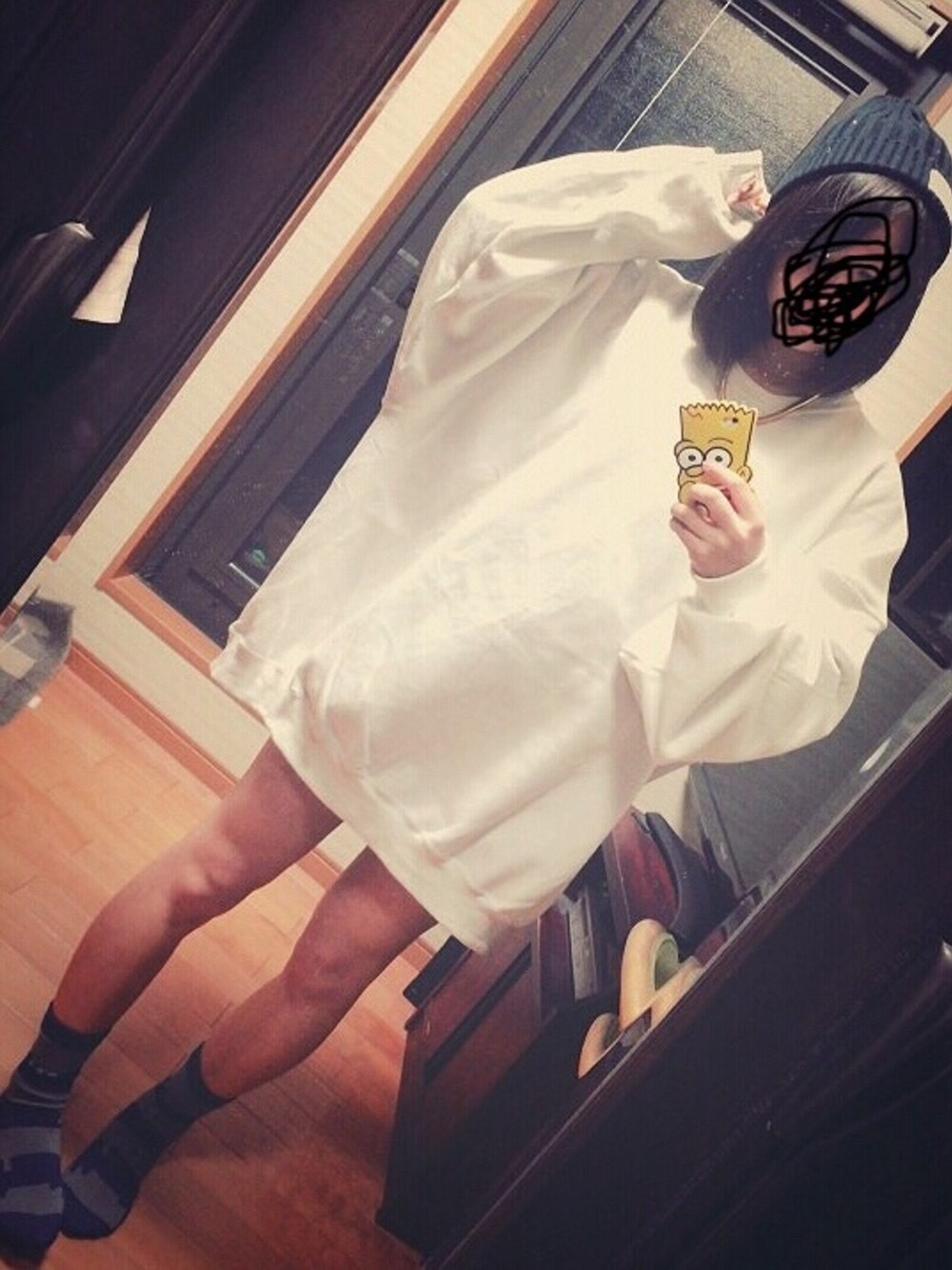 ホワイト系のスウェット、ゴールド系のネックレスを着用したレディースの冬コーディネートの1枚目の写真