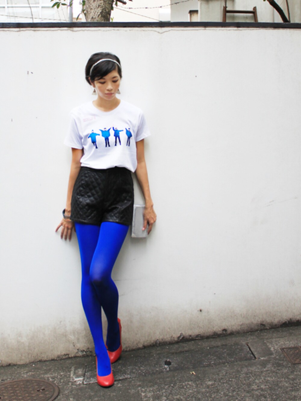 着用コーデ:11件ザ ビートルズ コラボレーションTシャツから『HELP!』をチョイス。 ウエストイン+ショートパンツでタイトなバランスでコーディネート。 ビビッドなブルーのタイツと赤いパンプスでスパイスをプラス。
