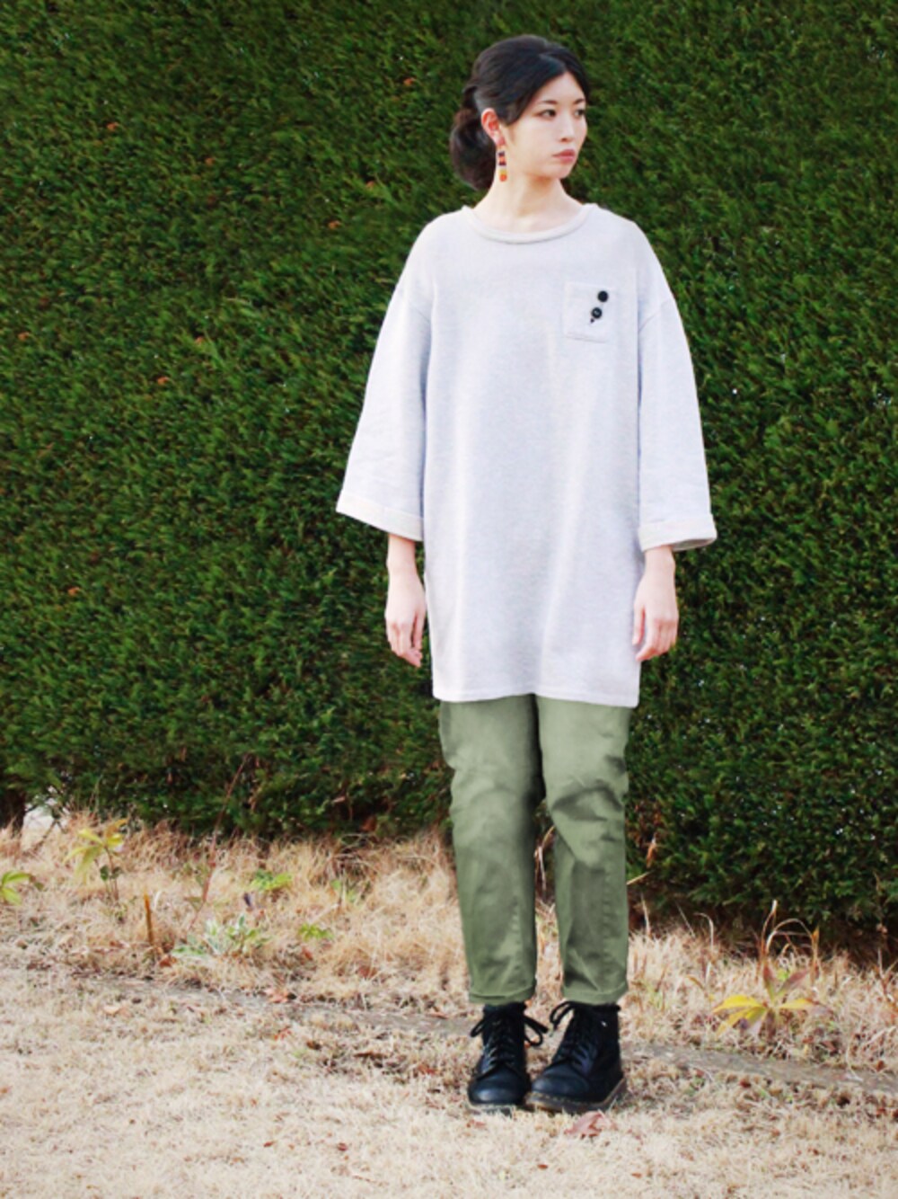 かもさんのワンピース「レインボーバックミドルスリーブスウェットワンピース(ビューティフルシャドーサングラス)」を使ったコーディネート