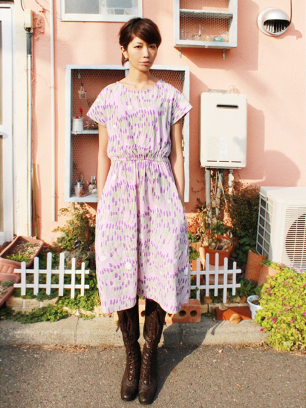 かもさんのワンピース「ブラウジングワンピース(ラベンダー)」を使ったコーディネート