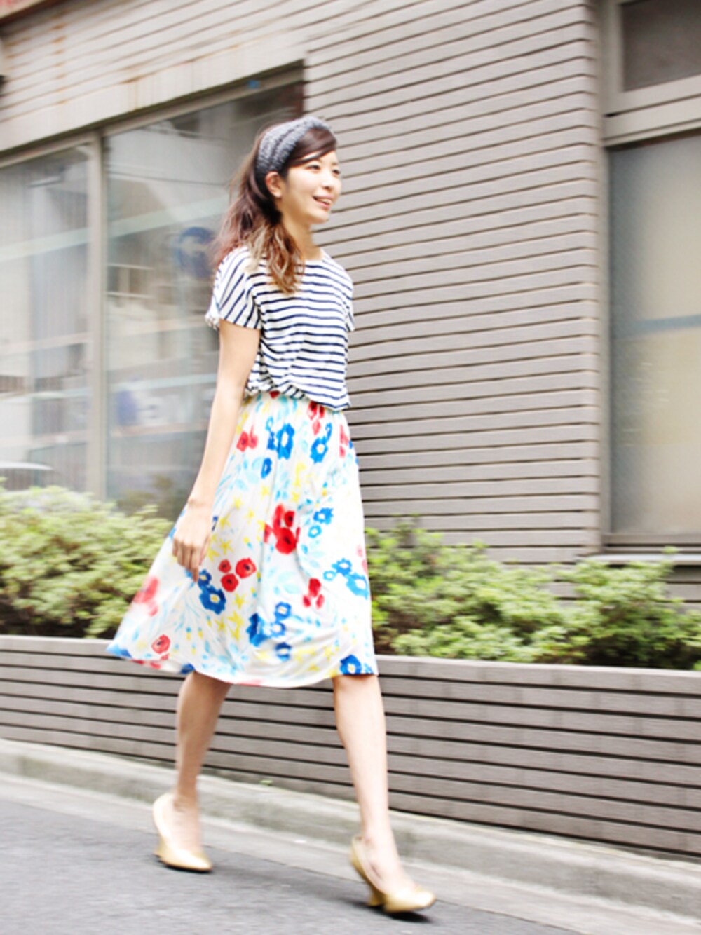 ボーダーと花柄がベストマッチした切り替えワンピース♪ ふわふわと風になびくなめらかな生地は肌触りも着心地も抜群です! 今年の春夏はカラフルな柄ものアイテムがたくさん欲しいです♪