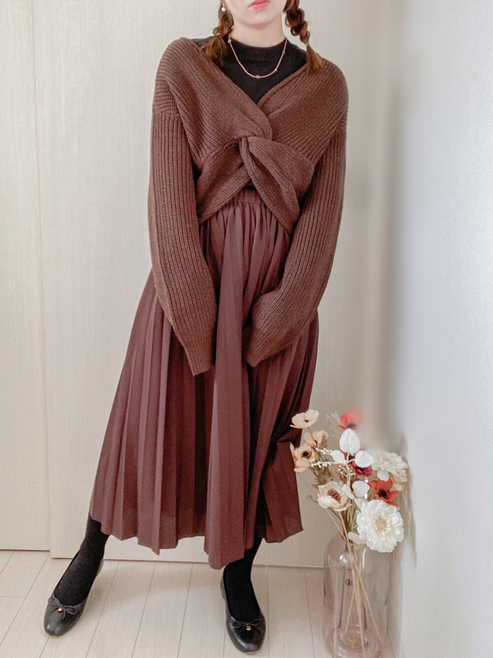 冬コーデ記録... ブラウンの色味が近いからセットアップみたいに着てみました。 アクセもピンクゴールドで同系色に🤟🏻
