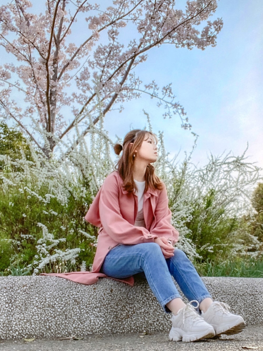 春コーデ記録... 桜に合わせてサーモンピンクのトレンチコート🌸シンプルなコーデもおしゃれ見えするから嬉しい😌