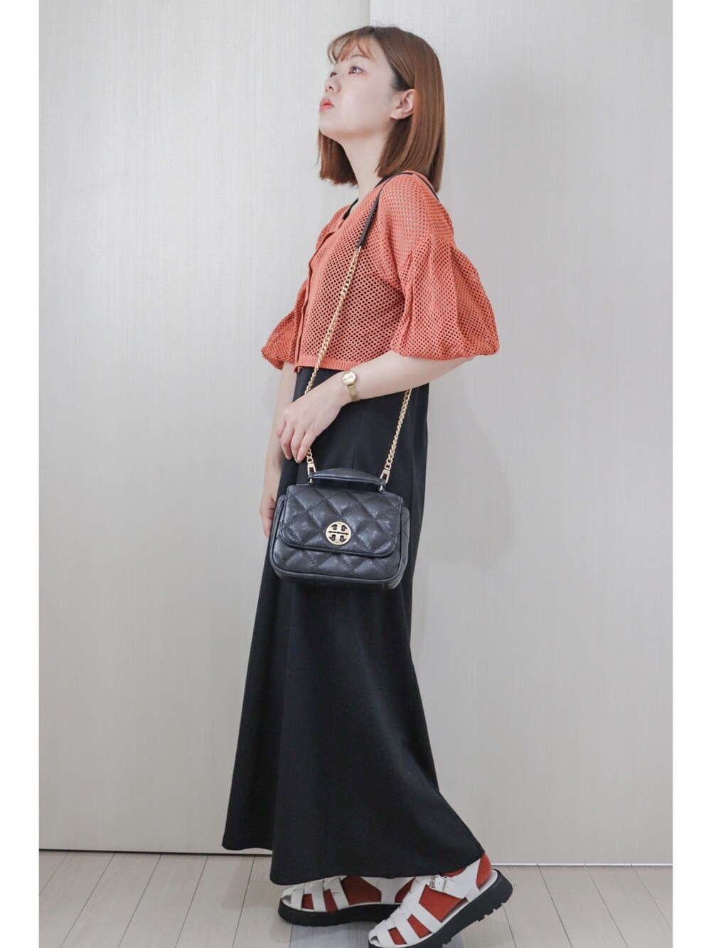 夏コーデ記録...23℃<29℃ オレンジ✖️ブラックコーデ🍊 袖がぽわんとしてお気に入りのカーディガン😌