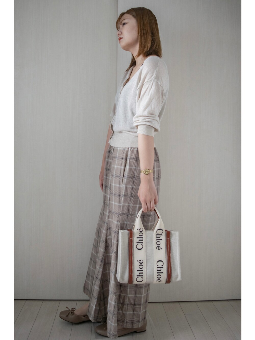 honasanのトートバッグ「WOODY / ストラップ付きスモールトートバッグ SMALL TOTE BAG WITH STRAP」を使ったコーディネート