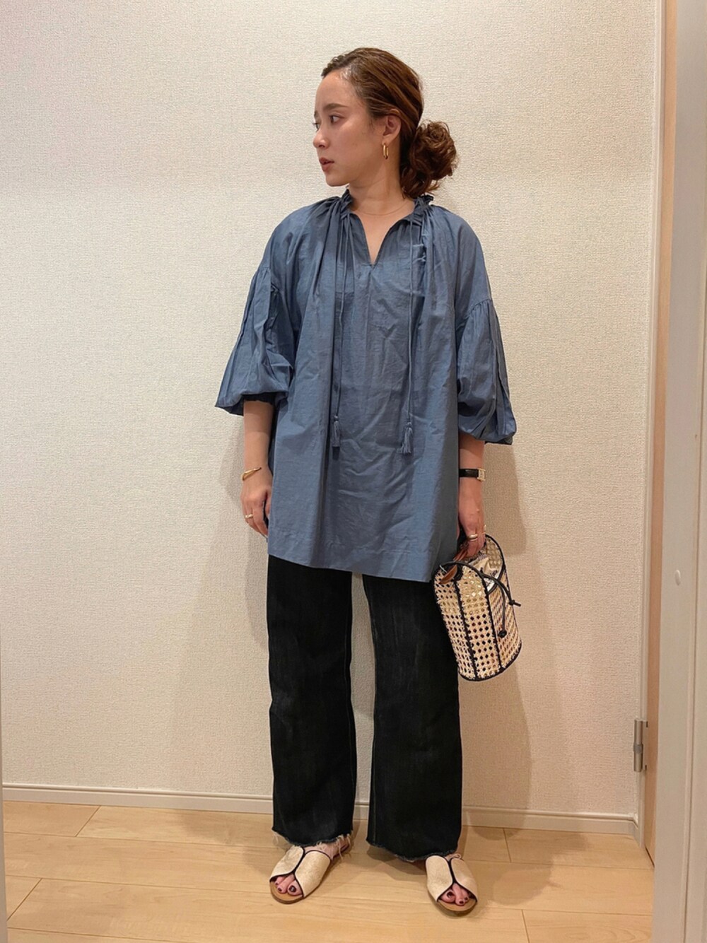 ✔︎ピアス:LOUISE DAMAS ✔︎腕時計:CARTIER ✔︎リング:bottega veneta / TEN. このブラウス、袖の所にゴム付いとって まくりやすいし、まくった時のボリューム感が たまらなく可愛いからお気に入り😛♥️ˎˊ˗ 今日はシンプルキレイめに🌵 Tシャツも好きやしブラウスもワンピースも好き🏋🏼♀️