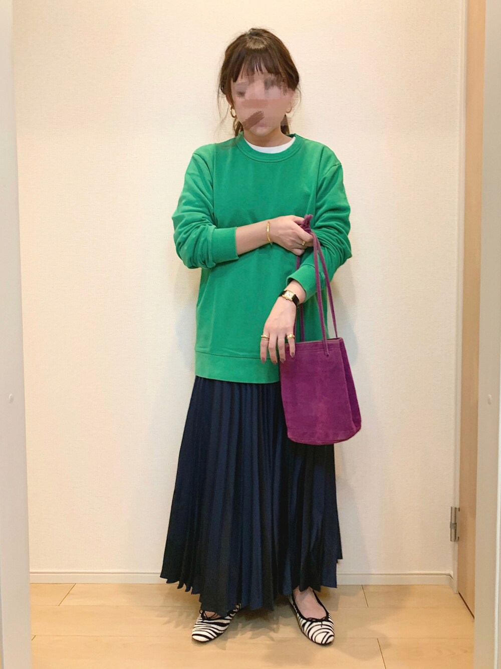 ✔︎バッグ:KBF+ ✔︎ピアス:LOUISE DAMAS ✔︎腕時計:must de CARTIER 鮮やかなグリーンに、ネイビーとパープル、 大好きな色達の組み合わせって最高〜😮💨♥️ˎˊ˗ インナーはUNIQLO Uやし、スカートも実は ZOZOのusedでかなり安く手に入れれた✌🏽🍃 usedもいい状態のもの多いから嬉しい〜🙆🏻♀️💯