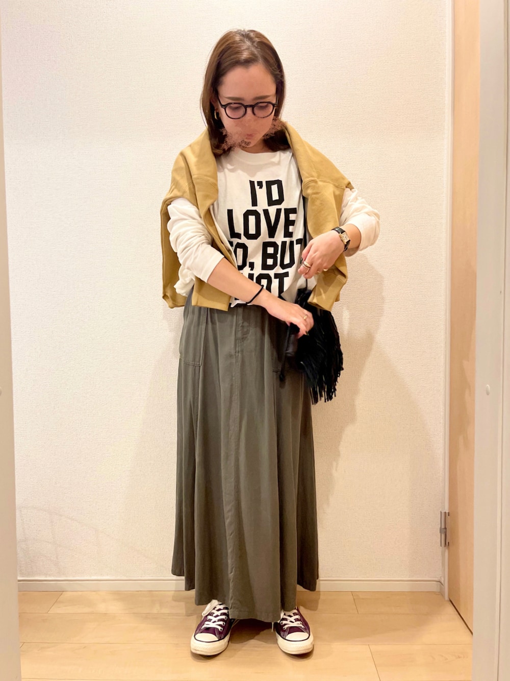 ✔︎メガネ:ZOFF ✔︎ピアス:LOUISE DAMAS ✔︎リング:botteg veneta / TEN. 前後どっちでも着れるtops、今回はロゴ前ver☝🏽 秋を連想させるカラーでまとめてみた🍇🍃 ボルドーのconverseのハイカット欲しいな😇 最近、🦷が痛すぎてご飯ほとんど食べてないのに 何故か2kgも体重が増えてるという人体の不思議❤️🔥