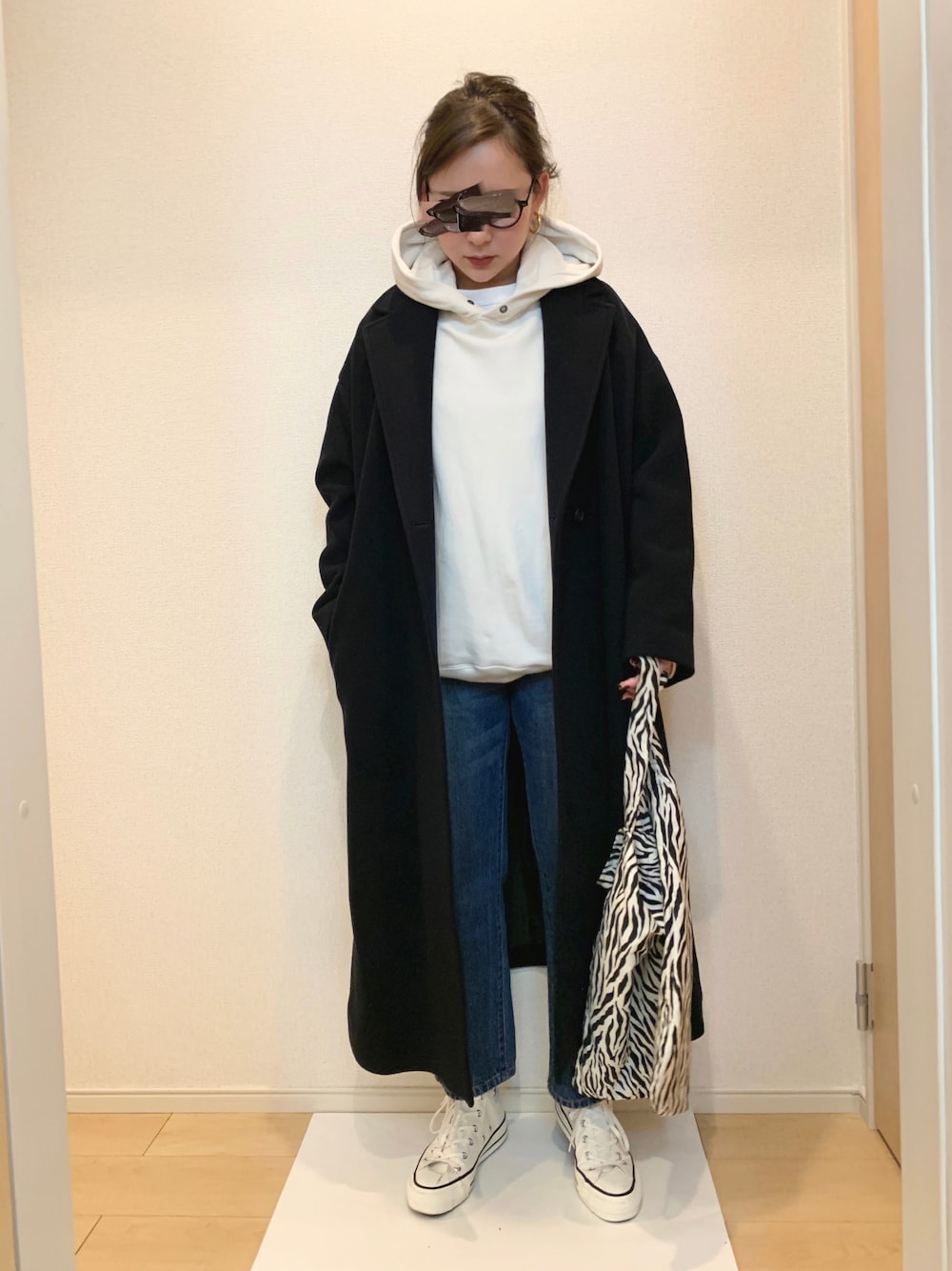 ✔︎メガネ:ZOFF ✔︎ピアス:LOUISE DAMAS ✔︎バッグ:COUDRE バサっと羽織れるコートの時は、キレイめではなく スニーカーでカジュアルダウンしたい願望有💁🏻♀️ パーカーと合わせてラフな感じに✌🏽🍃 最近服買ってないから着回しのレパートリーに 限界がやってきた~~考えるのメンドい🤣💭