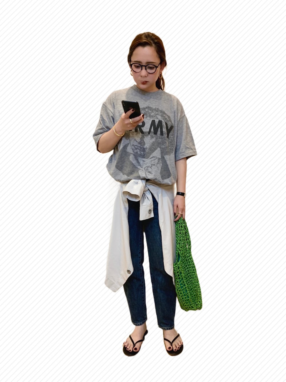 ✔︎メガネ:ZOFF ✔︎ピアス:LOUISE DAMAS はい暑すぎてTシャツ登場🥵💭 でも夜は肌寒いから腰にシャツ巻き巻き🙆🏻♀️ 背景消したら左腰の一部消えた~現実でも消えろ~