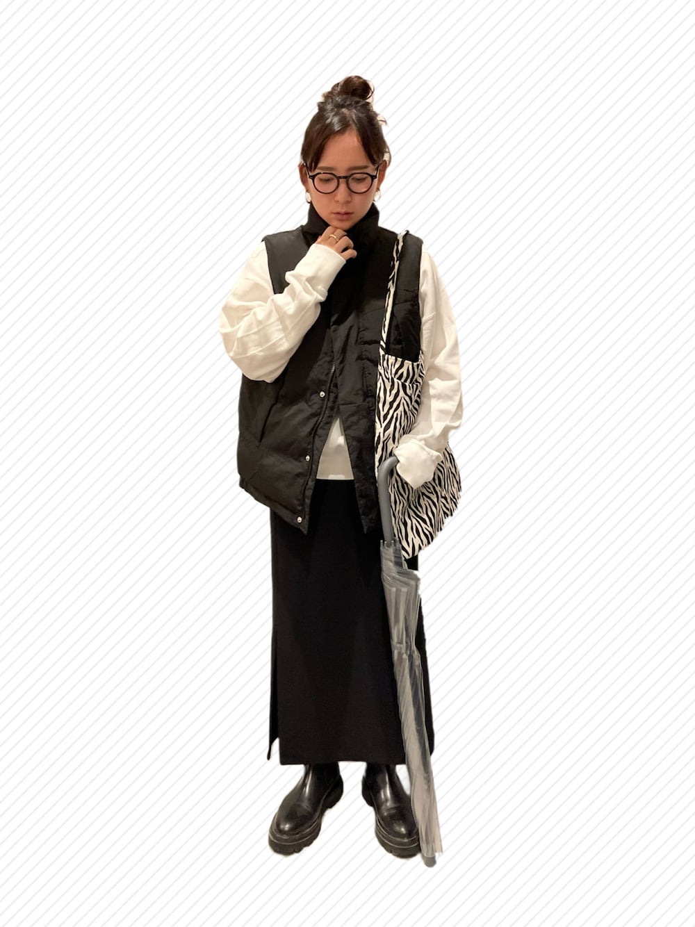 ✔︎ピアス:LOUISE DAMAS ✔︎メガネ:ZOFF スウェット&スカートは前と一緒で ブーツに変更してベスト羽織りましたコーデ🚩