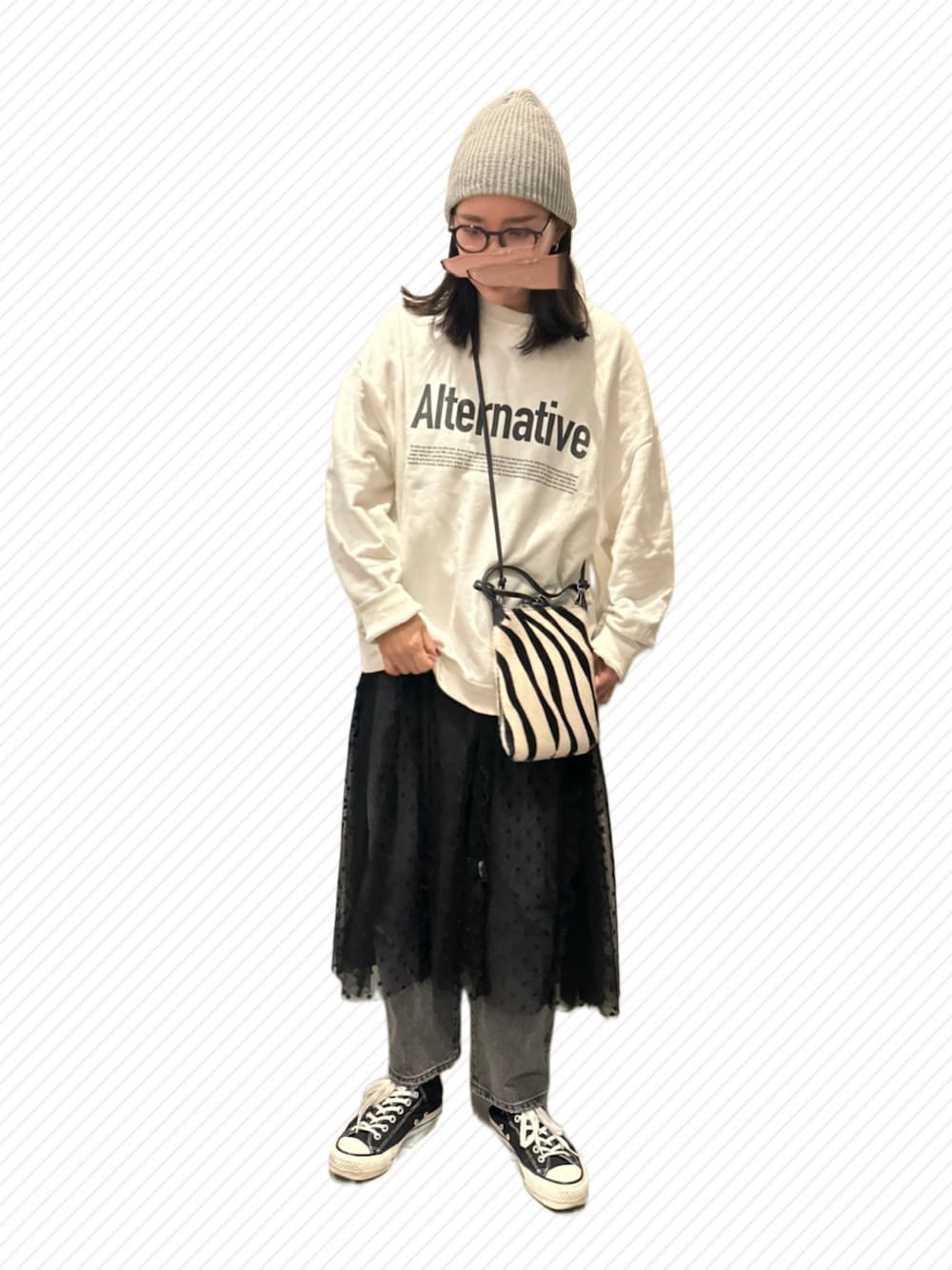 買ったはいいものの使い道困ってたチュールスカート 合わせてみたけどしっくりこんような、、、