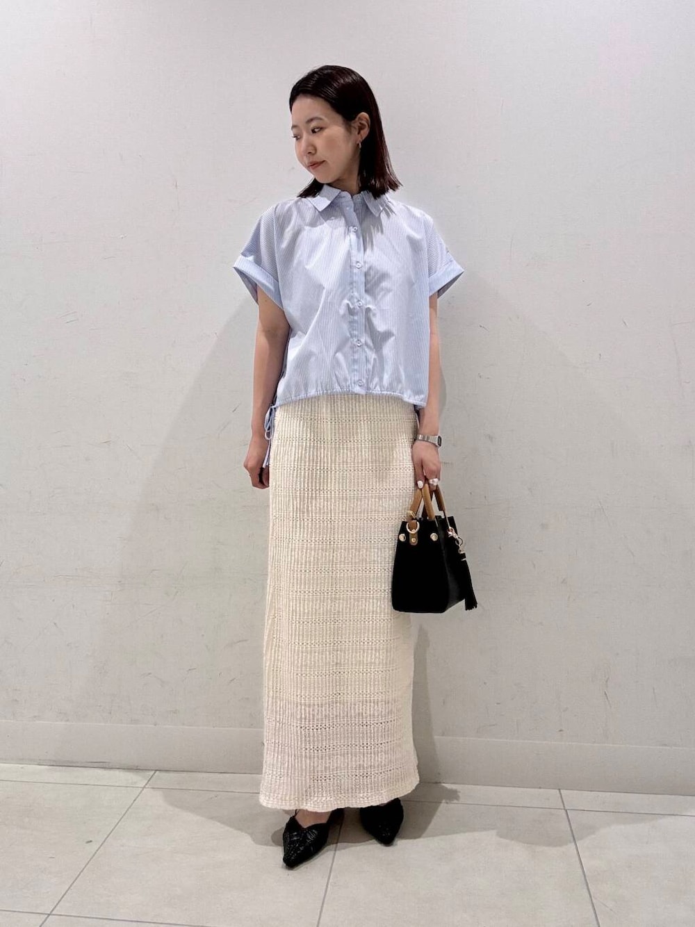着用コーデ:56件ご覧いただきありがとうございます☺️ シャツは裾が絞れてシルエットを変えることができます! どんなボトムスとも合わせやすいので 着回しがしやすいです✨ スカートはストレッチが効いているので 動きやすくストレスフリーで履いていただけます! ぜひチェックしてみてください♡
