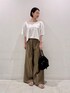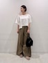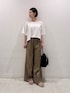 トップスは肩を出しても着れるので 一枚で色々な雰囲気を楽しめます! 今回はバギーパンツと合わせて大人カジュアルに🌿 パンツはサイズが少し大きく感じましたが シルエットが綺麗なのでとってもオススメです◎