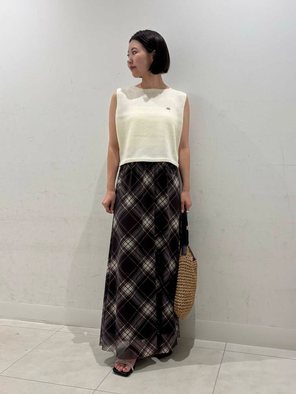 トップスはどんなアイテムとも合わせやすいシンプルなデザイン🤍 スカートはウエストがゴムなのでとっても楽ちんです! チェック柄がコーデのアクセントに◎ シルエットも綺麗なのでぜひお試しください☺️