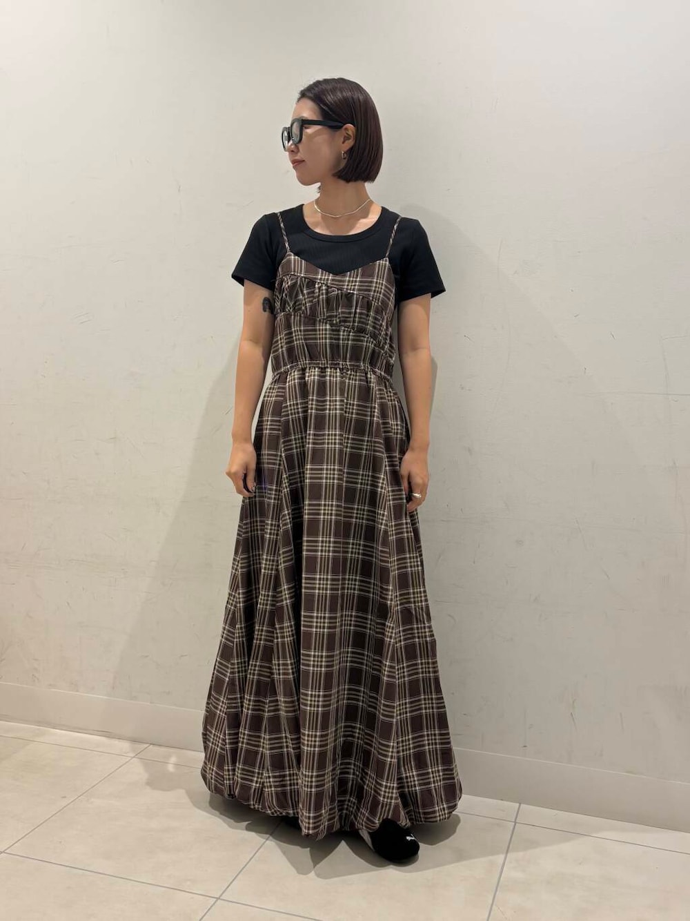 裾のバルーンがポイントのワンピースは2サイズ展開です☺️ 今回は丈が短いコンパクトサイズを着ています! 肩紐で長さ調節できるのもおすすめポイントです🙆♀️ サラッと着れてとても楽ちんなので暑い日もストレスフリーで着ていただけます◎◎