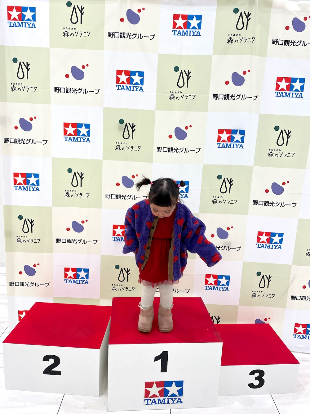 パープル系のジャケット/アウターを着用したキッズの冬コーディネートの1枚目の写真