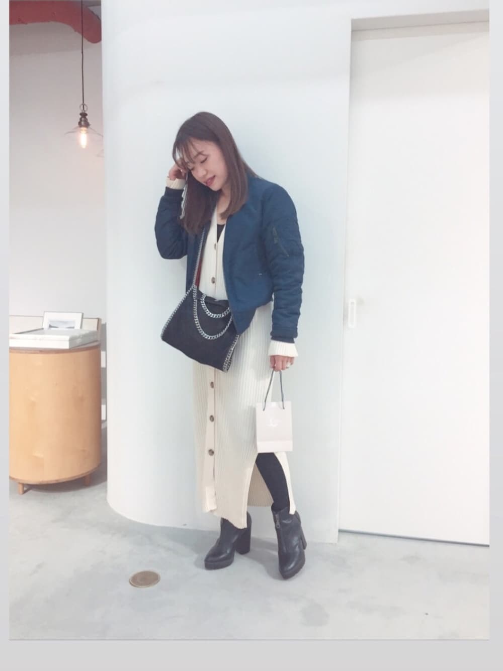 かわかみのワンピース「2WAYリブニットワンピース/825307」を使ったコーディネート