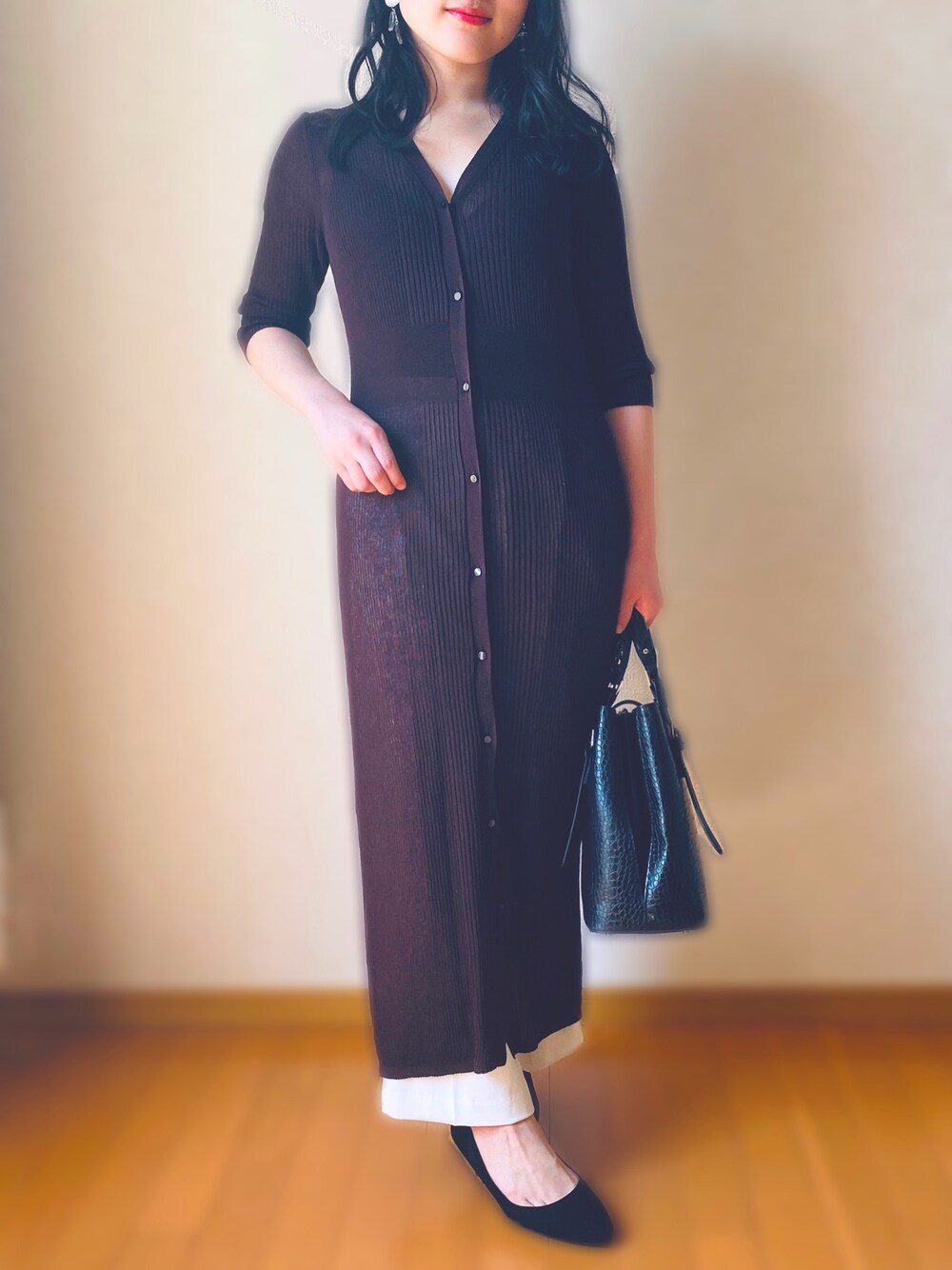 着用コーデ:6件かなのカーディガン/ボレロ「シアーリブロングカーディガン」を使ったコーディネート