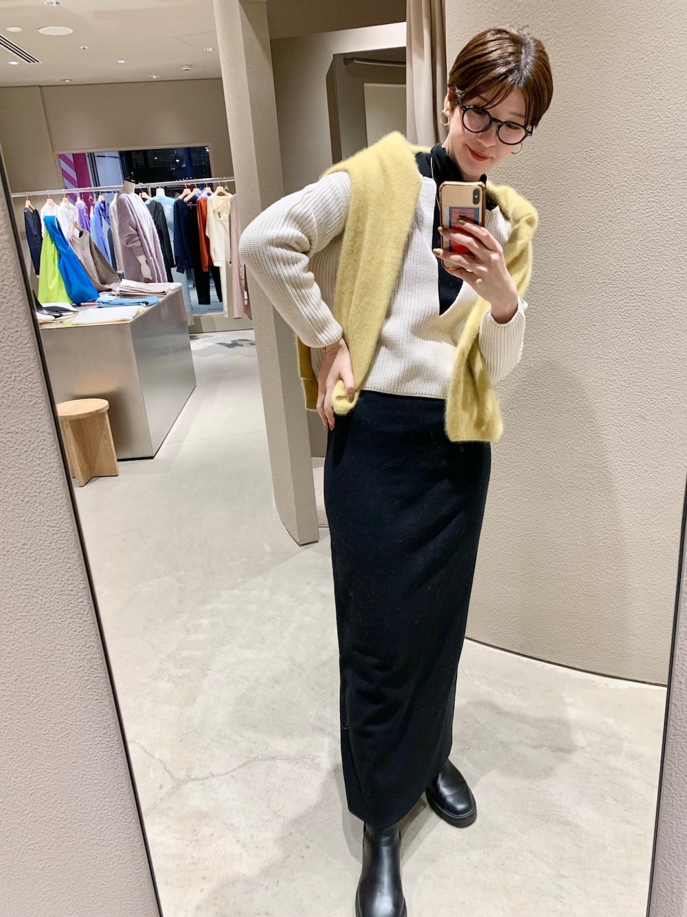 GOTOU_171cm(SHENERY梅田EST店)のワンピース「総針ニットタイトマキシキャミワンピース」を使ったコーディネート