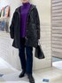 毎年人気の、UNIVERSAL OVERALL別注コート。 今年はバックスタイルにタック入りでAラインのシルエットに! ミドル丈なのでどんなお洋服ともバランス良く着られる万能な形です✨ おうちでお洗濯も可能なポリエステル素材で とにかく軽いのも人気のpointです👏 インナーにはAQUAタートルニット パープルを差し色にスタイリングしました🟣 発色の良さが、こちらも毎年好評のニットです☺️ パンツはふかふかの裏起毛で暖かいデニム👖 膝下をストレートにしているので 来てみるとややフレアになるシルエットがとてもきれいなパンツです!
