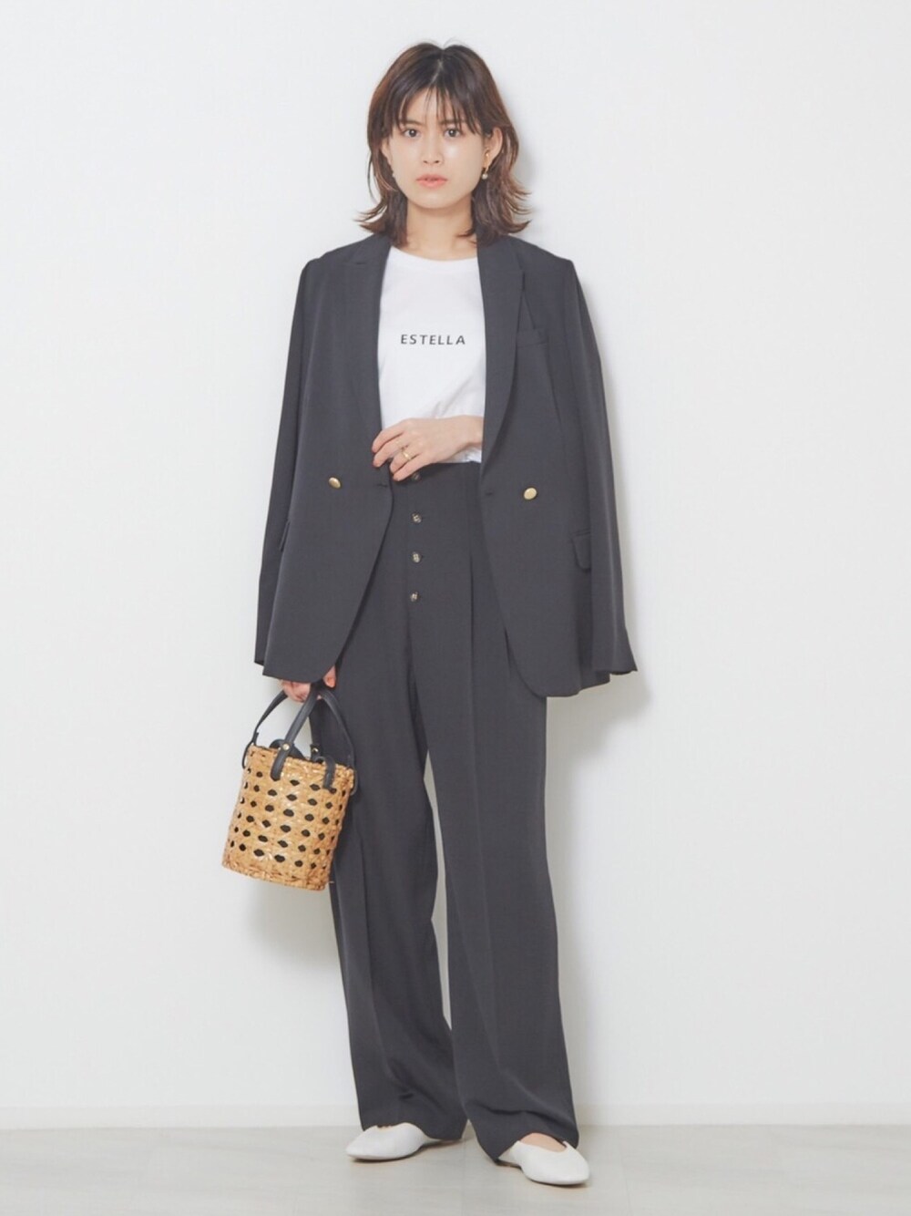 堅苦しすぎないジャケットのセットアップは、1セットあると何かと使いやすくおすすめです◎ ジャケットのサイズも、肩に少しゆとりがあるのでストレスフリーな着心地です。