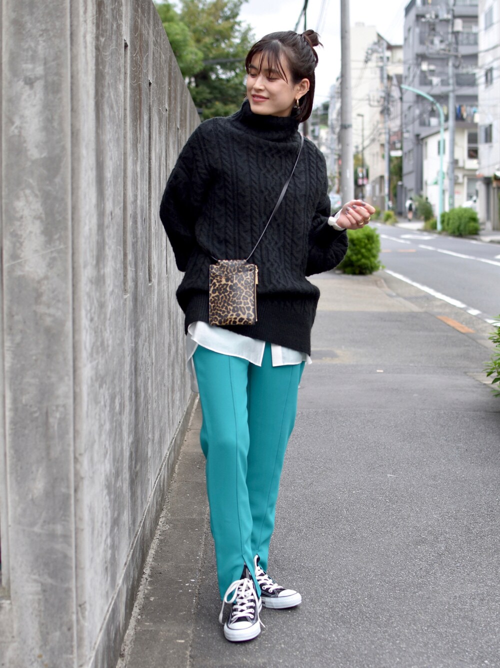 . クリーンな編み地が大人なケーブルニット。 スリット入りのイージーパンツと合わせて、 キャッチーさを加えました! 足を綺麗に見せてくれるパンツは、 オールシーズン活躍します◎