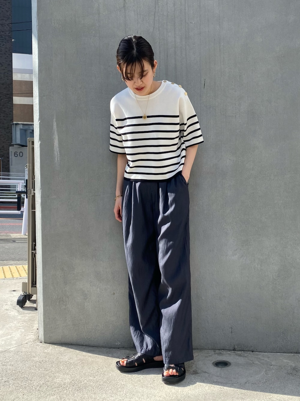 大人のマリンスタイリング。 足元には、グルカ風サンダルにスポーツテイストを取り入れたデザインサンダルを。 インスタも是非チェックお願いします♡ @kanako_taji