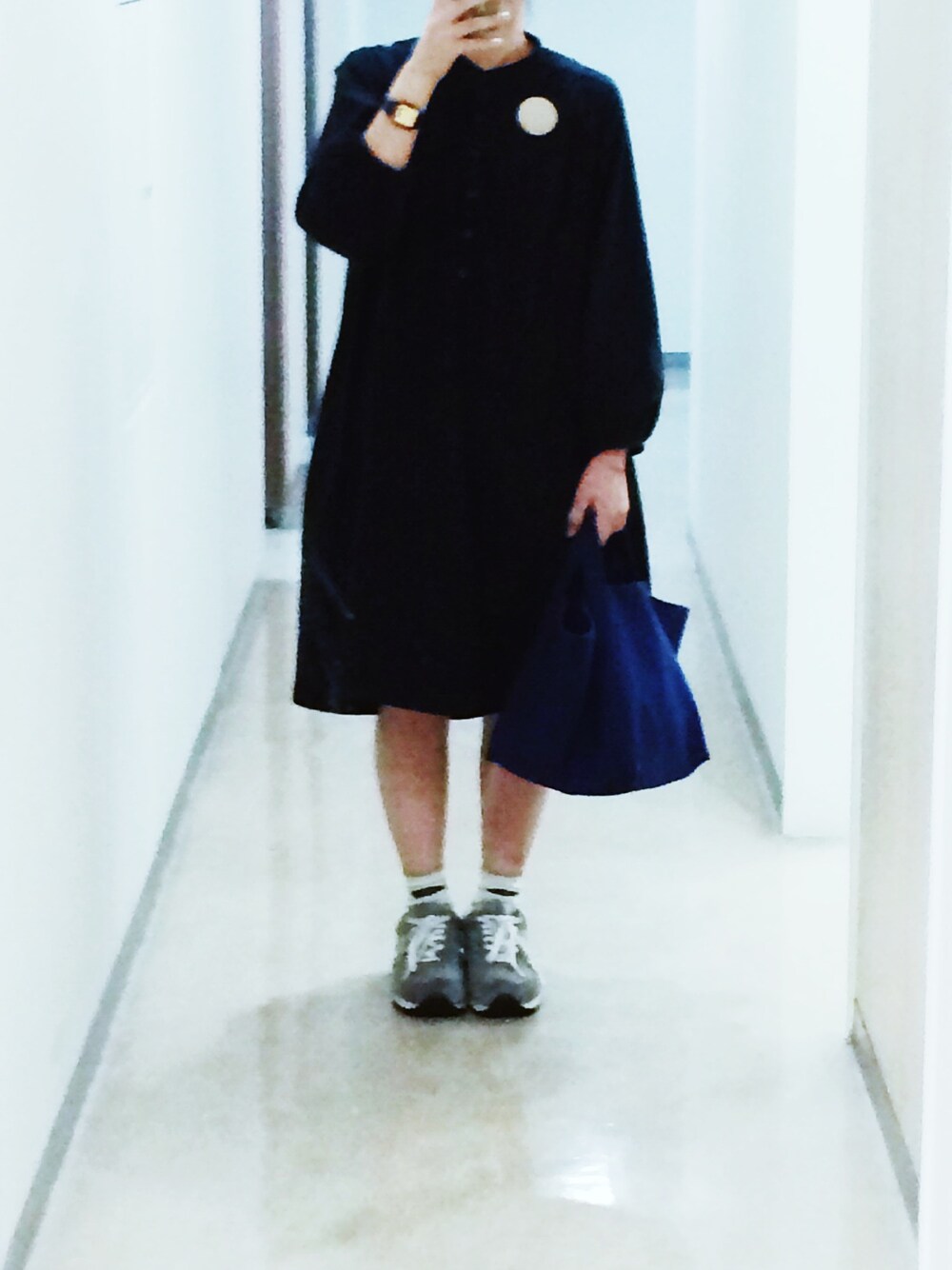 画質わる。 すっかり秋の気温だー。 フォルムがお気に入りのワンピースは 無印のルームウェア さてと、休日出勤がんばるかいね 明日がたのしみー。 ワンピース:無印良品 靴下:靴下屋 かばん:STRIPE くつ:ニューバランス ブローチ:ミナペルホネン