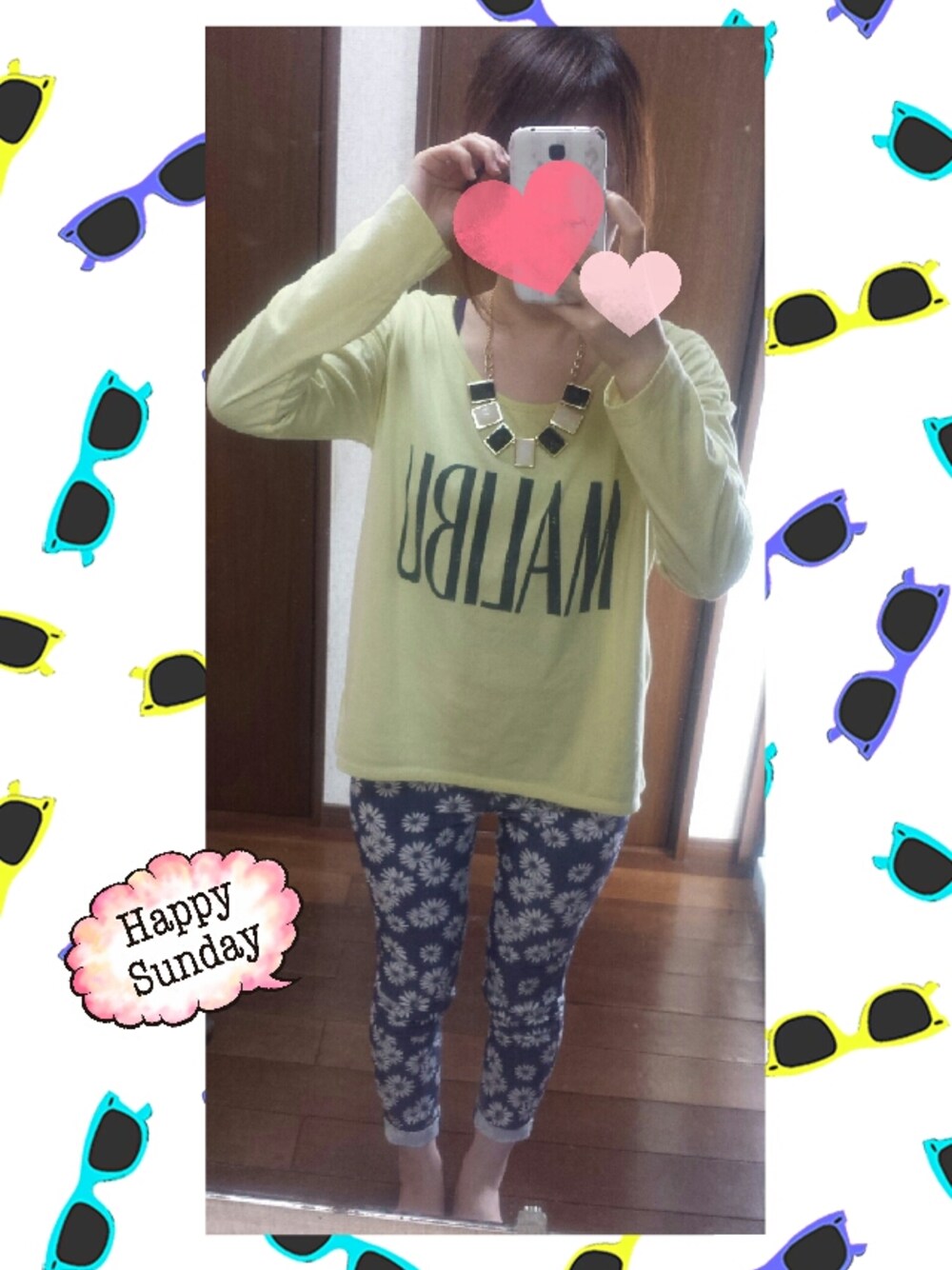 Dip DropsのロゴTシャツと GUのマーガレット柄ロールアップレギパン。