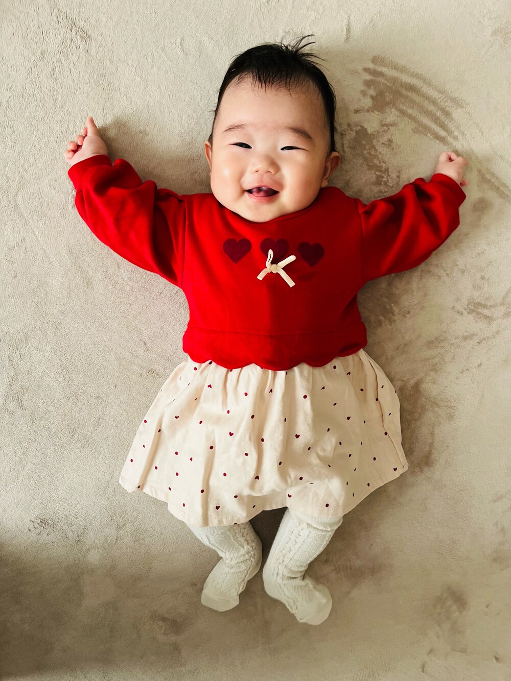 4ヶ月の赤ちゃんコーディネート🤲🏻❤️ 赤ちゃん本舗で一目惚れした かわいいワンピース👗🎀 最近見つけた赤ちゃんブランド 「petit main」🧸🎈 めちゃくちゃかわいいデザイン いっぱいあって沼やぁ😂💭(笑)