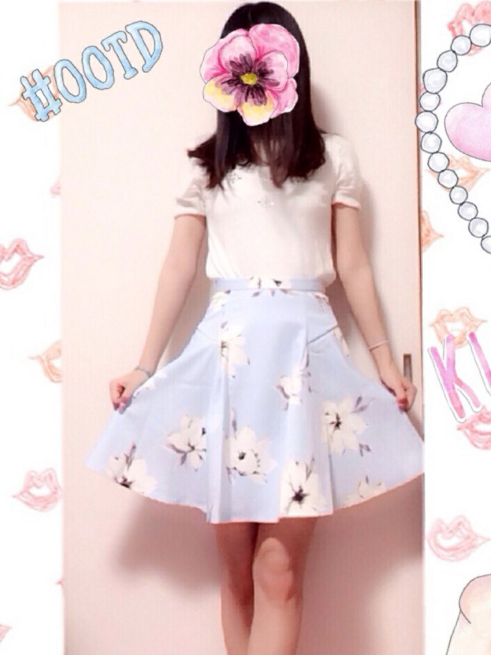 かなたすのスカート「サマーフラワーフレアスカート」を使ったコーディネート