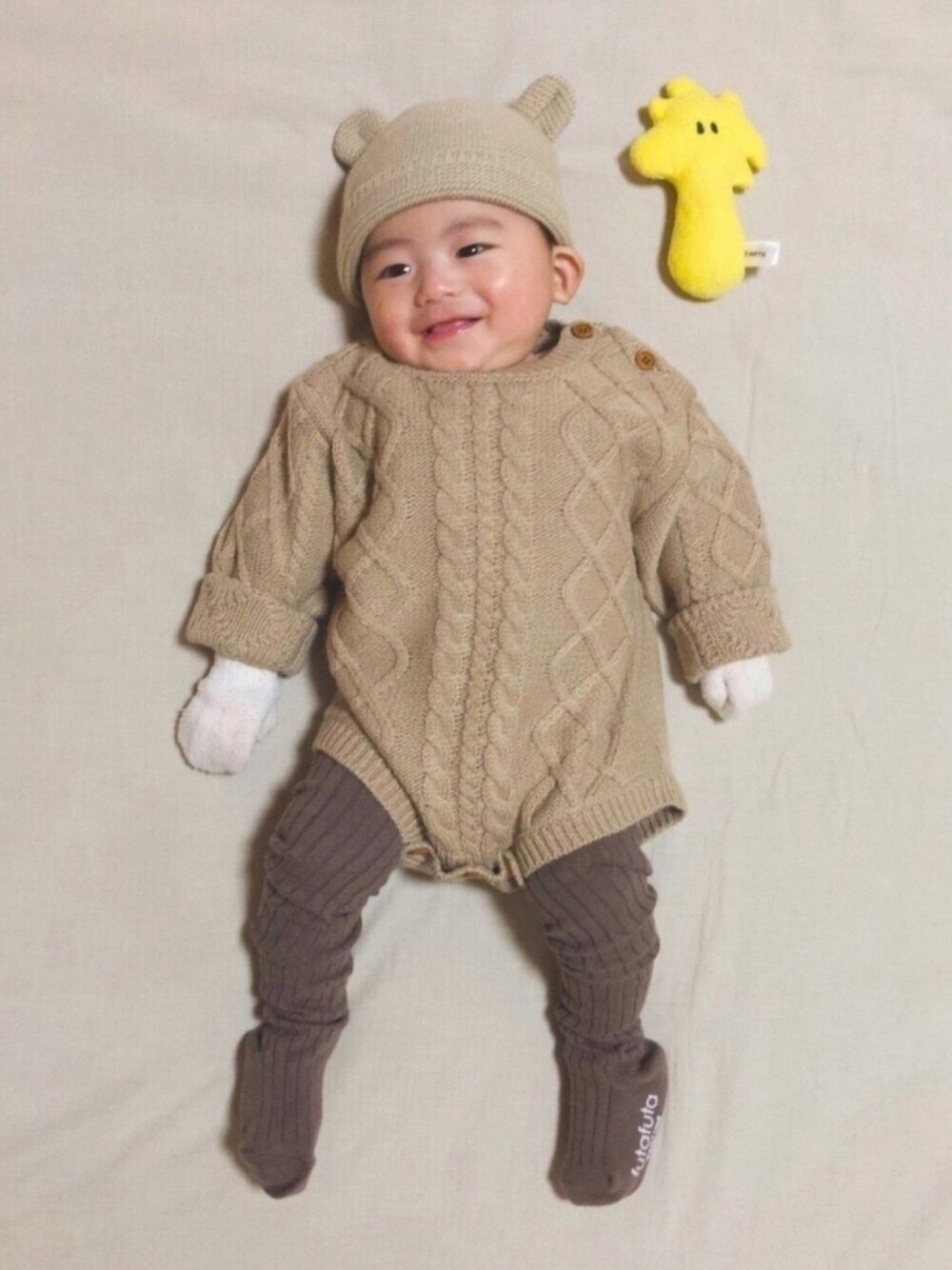 👶🏻「あったかいね〜」 🐥「オッキクナイ?」 🧑🏻「初めてバースディに行ってきたんですが沼でした笑。大きいけどとりあえず着せてしまいました笑。」