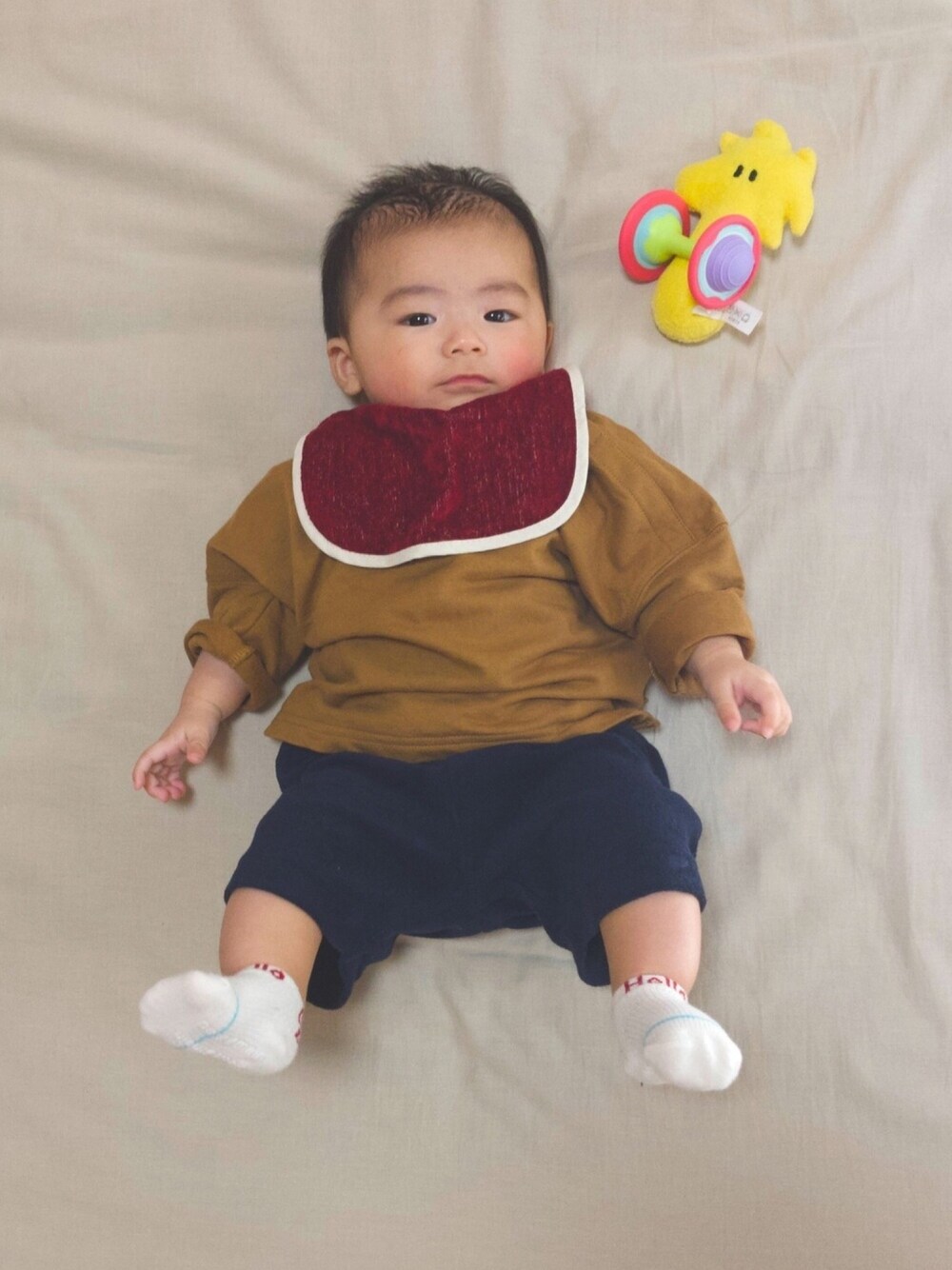 👶🏻「4ヶ月の僕でしゅ」 🐥「コレデアソボー」 🧑🏻「どうも渋い色合わせをしてしまう🍁好き」