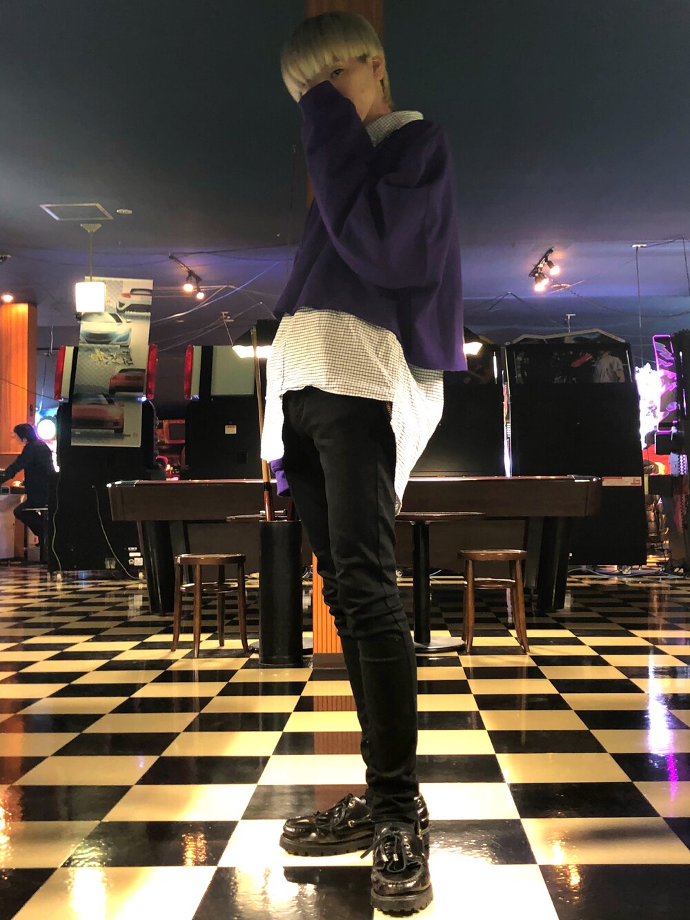 韓国系ファッションで🇰🇷 スウェットは丈を切って短く🔥 トップスはオーバーサイズのアイテムを使ってパンツはスキニーにしてシルエットを可愛く🔥